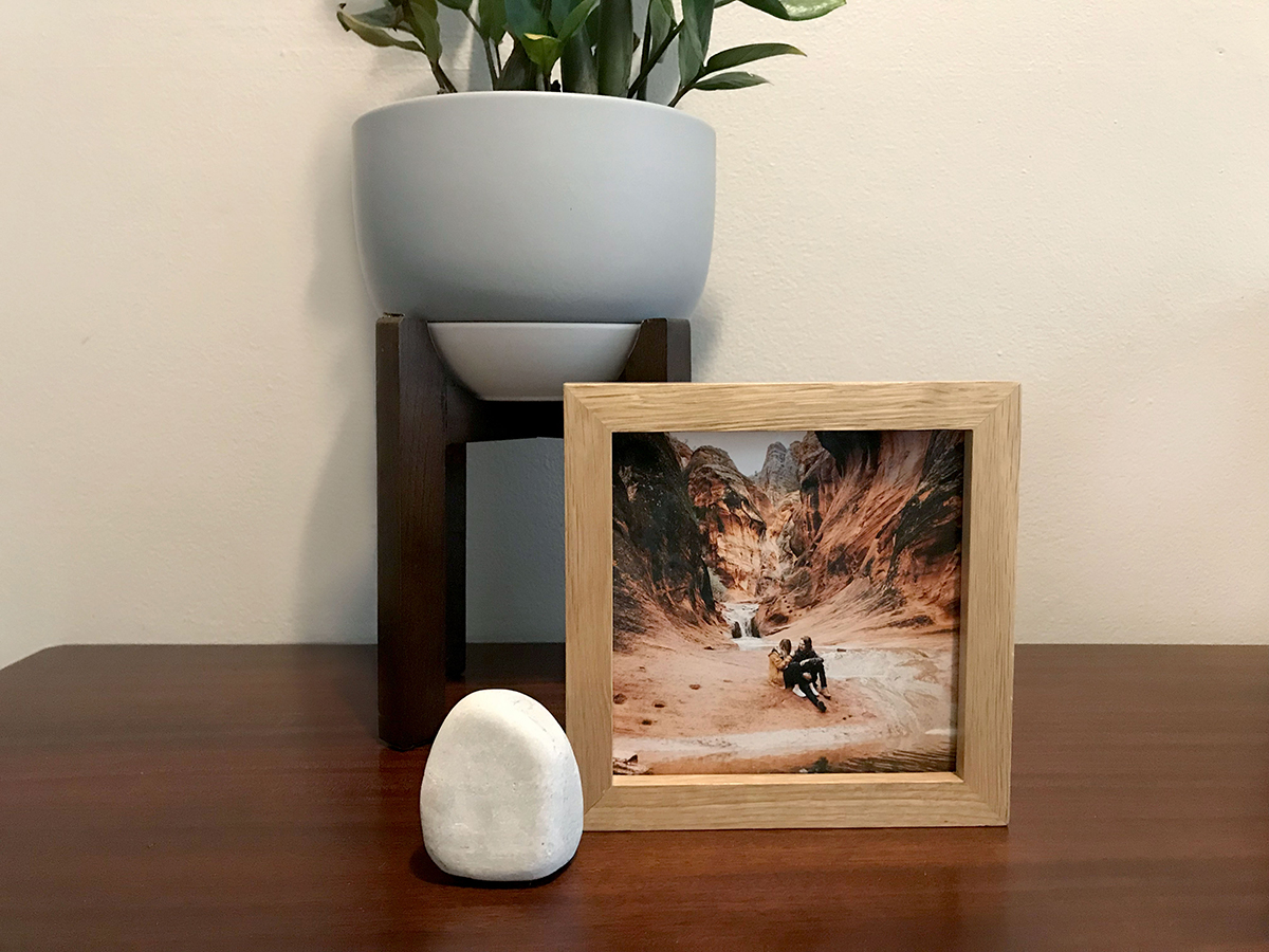 What’s a neutral? Think white, black, grey or any earthy-tone in or around the beige family. But don’t let the name fool you, neutrals don’t have to be boring. Bring in some white marble, a beautiful light oak (like our Wood Block photo stand), or a particularly interesting grey stone you picked up in the park.