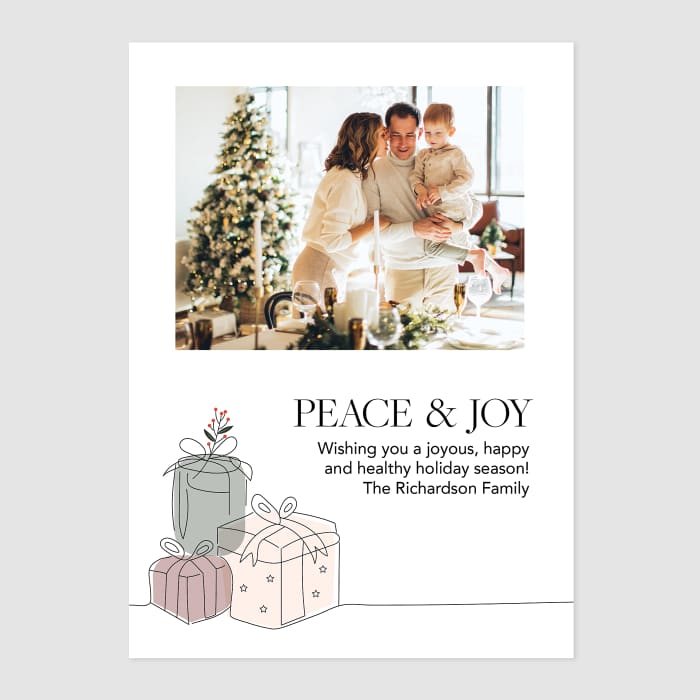 Send love and beauty into the world. The beauty comes from the photos of your family, and the love is built-in because they’re from you! Choose from over 65 designs - printed on our classic matte paper, and paired with high-quality, beautiful envelopes. New this year - all cards include a back option, so there's more room for additional photos or a longer message! It’ll only take a minute to pick a design and add a few family photos to fill it, but your card will be sure to hold the place of honor on grandma’s fridge all year long.