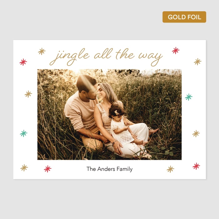 Send love through the mail and right into the hands of your friends and family with a custom holiday card! Choose from 40 Gold Foil designs - with gold foil accents printed on our classic matte paper. Each set of cards comes with a set of high-quality, beautiful envelopes. New this year - all cards include a back option, so there's more room for additional photos or a longer message! It’ll only take a minute to pick a design and add a few family photos to fill it, but your card will be sure to hold the place of honor on grandma’s fridge all year long.