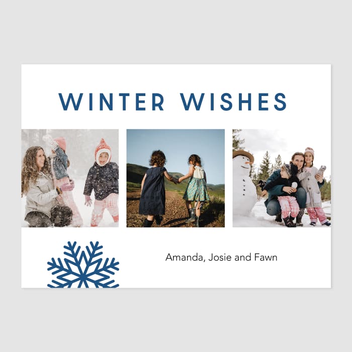 Send love and beauty into the world. The beauty comes from the photos of your family, and the love is built-in because they’re from you! Choose from over 65 designs - printed on our classic matte paper, and paired with high-quality, beautiful envelopes. New this year - all cards include a back option, so there's more room for additional photos or a longer message! It’ll only take a minute to pick a design and add a few family photos to fill it, but your card will be sure to hold the place of honor on grandma’s fridge all year long.